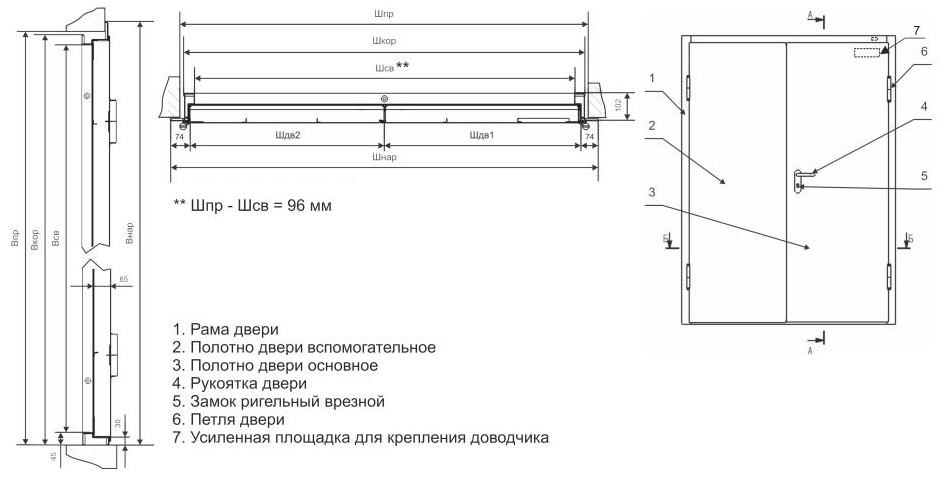 ТИПОВАЯ КОНСТРУКЦИЯ ДВУСТВОРЧАТОЙ ОГНЕСТОЙКОЙ ДВЕРИ