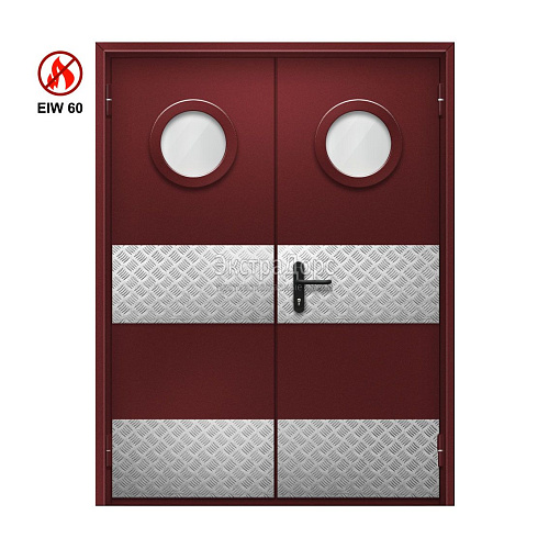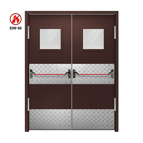 Двухстворчатая огнеупорная дверь с порошковым напылением EIW 60 стальная с окном