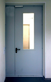 Двупольная огнестойкая дверь с порошковым покрытием EIW 60 двупольная стальная с остеклением