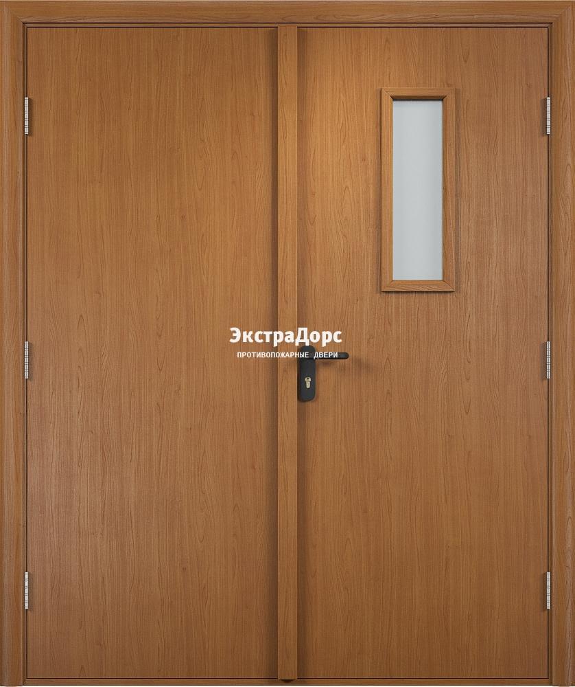 Двупольная противопожарная дверь ДМП-01-30 двухстворчатая со стеклом дуб в Солнечногорске