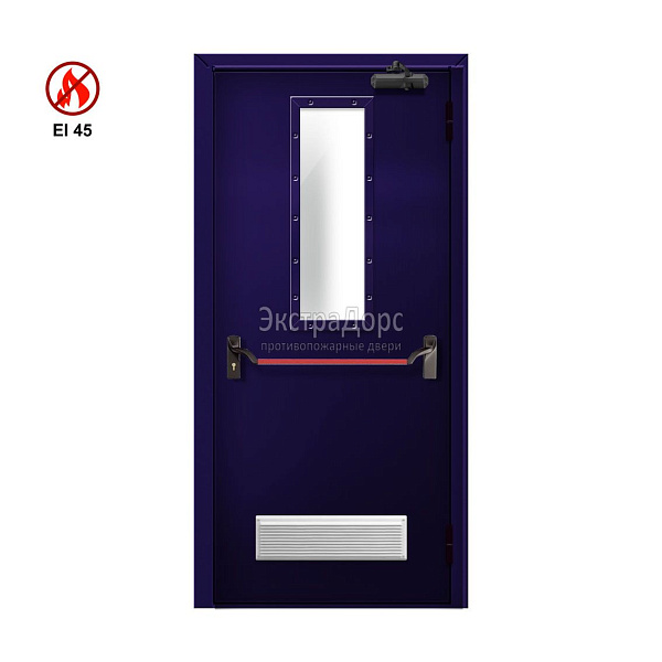Противопожарная дверь с одной решёткой EI 45 ДО-01-EI45 ДП147 однопольная остекленная с антипаникой в Солнечногорске