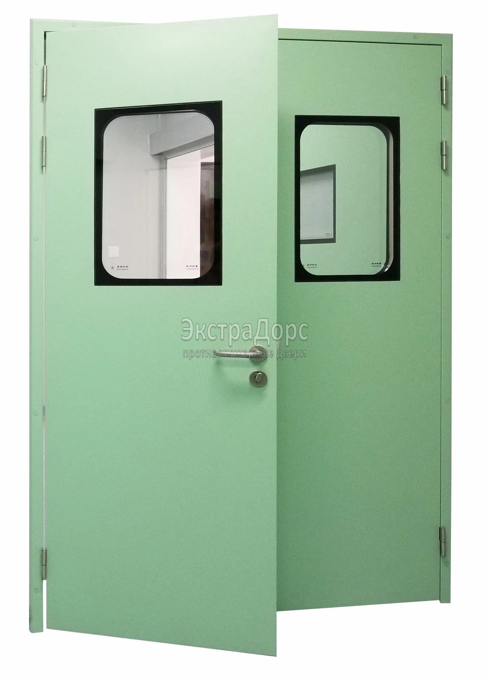 Двухстворчатая огнестойкая дверь EIW 60 зеленая со стеклом в Солнечногорске