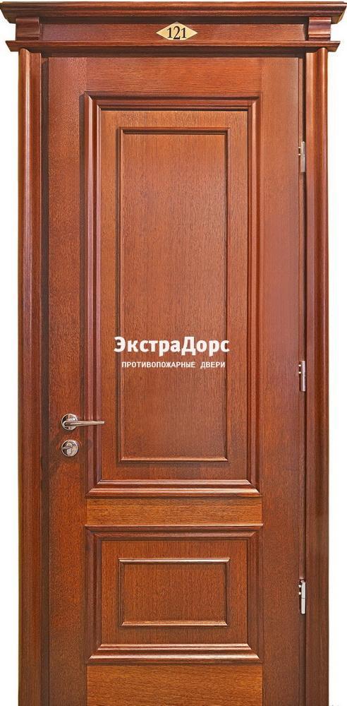 Противопожарная дверь однопольная с мдф дуб с резьбой