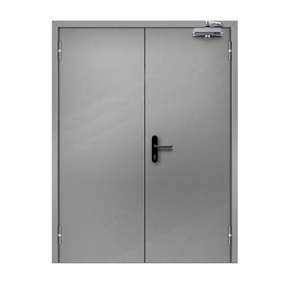 Металлическая противопожарная дверь ДМП-01-30 двупольная серая с простой ручкой