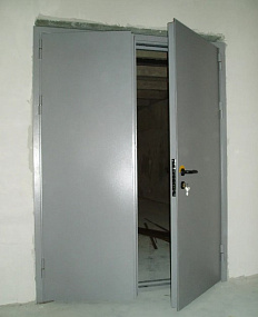 Дверь противопожарная серая правая двупольная