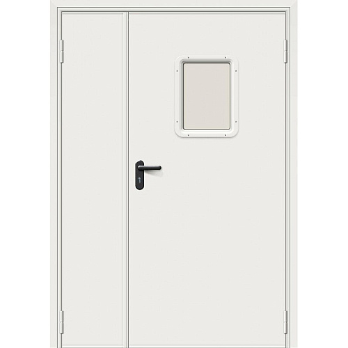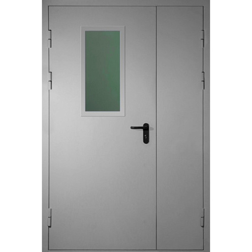 Распашная дверь огнестойкая полуторная с окном порошковое напыление