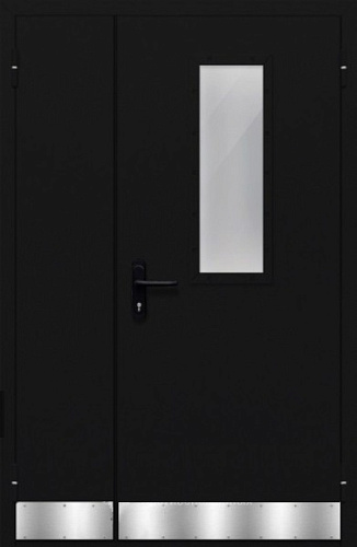 Двухстворчатая огнеупорная дверь с порошковым напылением EIW 60 стальная с окном