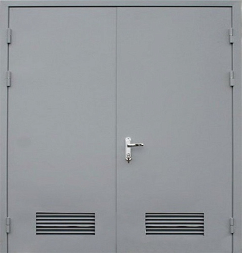Противопожарная дверь с порошковым напылением EI 60 ДГ-02-EI-60 полуторная глухая с решёткой