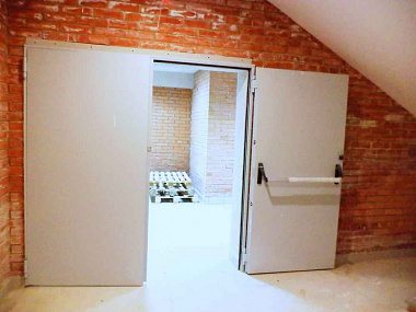 Сами двери изготавливаются стандартно - они состоят из двух металлических листов, обеспечивающих прочность и огнестойкость. Между этими листами находится утеплитель, который обычно выполнен из базальтового волокна, что позволяет изоляции сохранять свои свойства при высокой температуре.