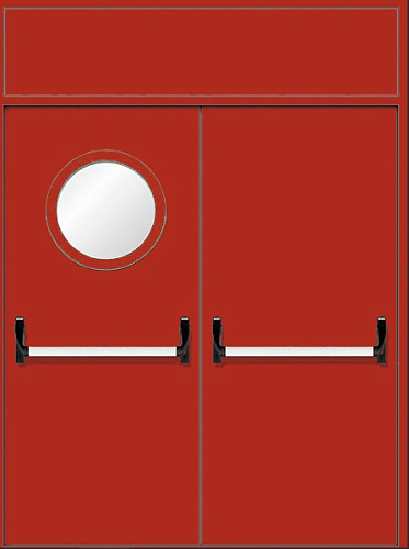 Дверь противопожарная металлическая с фрамугой и круглым окном