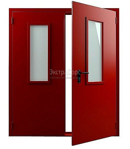 Двухстворчатая противопожарная дверь EIW 60 стальная с остеклением