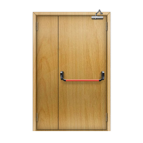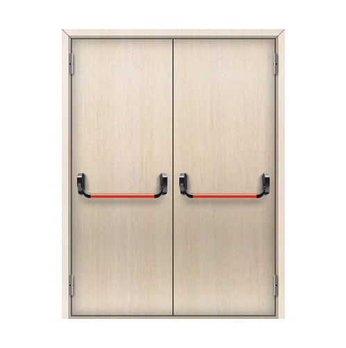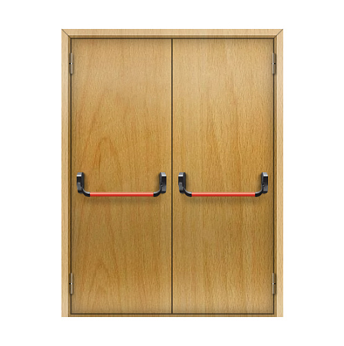 Противопожарная дверь шпонированная 3-го типа глухая двупольная с антипаникой цвет Бук