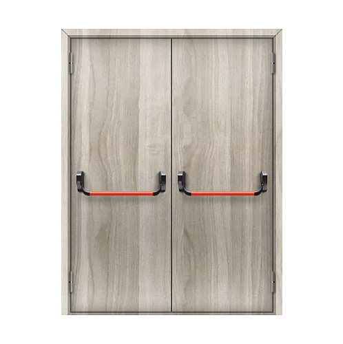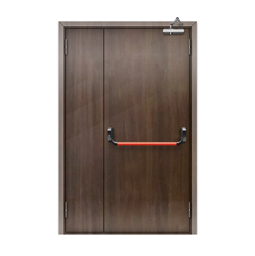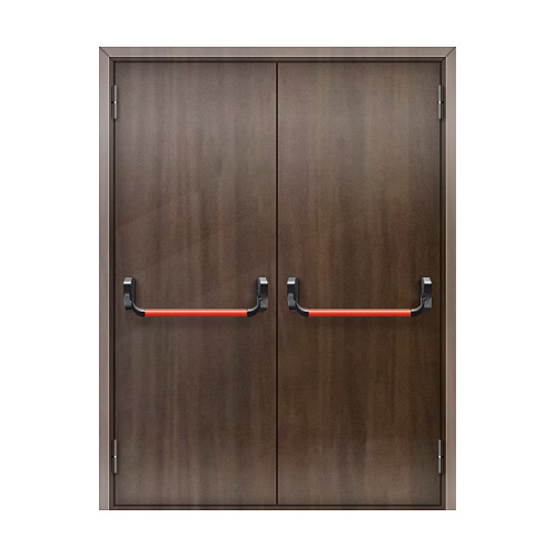 Огнестойкая дверь шпонированная EI 60 глухая двупольная с антипаникой цвет Орех Винтаж