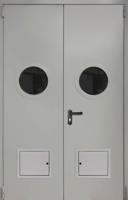 Противопожарная дверь со стыковочным узлом ДПМ-02 двупольная остекленная