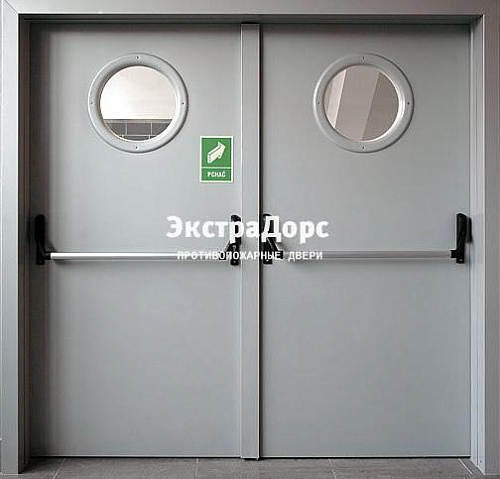 Противопожарная дверь двухстворчатая с антипаникой и остеклением