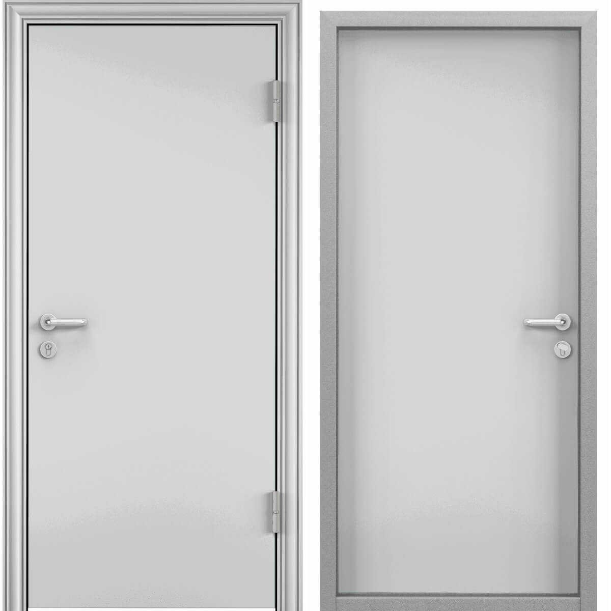 Противопожарная дверь входная металлическая серая беспороговая