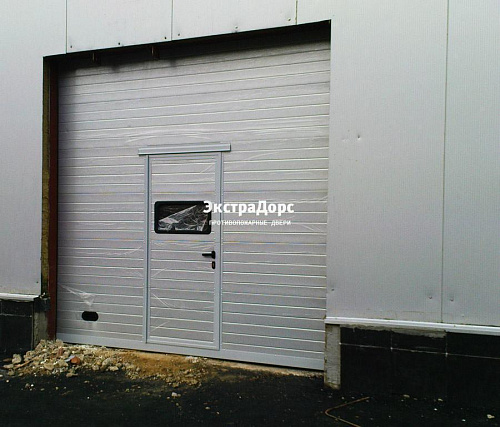 Секционные подъемные противопожарные ворота с калиткой и окном