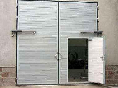 Белые распашные противопожарные ворота с доводчиком