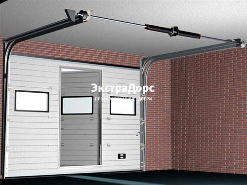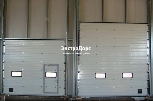 Подъемные противопожарные ворота с окнами и поворотной калиткой