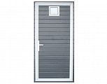Серые распашные противопожарные ворота с калиткой