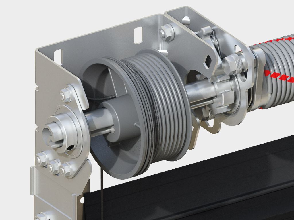 1. Направляющая для полотна ворот. 2. Торсионный механизм.