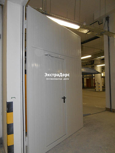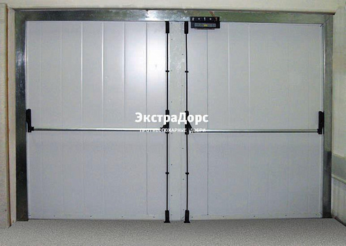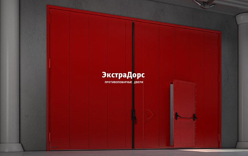 Распашные противопожарные ворота с калиткой, порошковая покраска