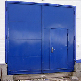 Секционные подъемные противопожарные ворота с калиткой и окном