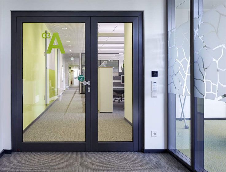Противопожарная алюминиевая дверь со стеклом для офиса в Солнечногорске