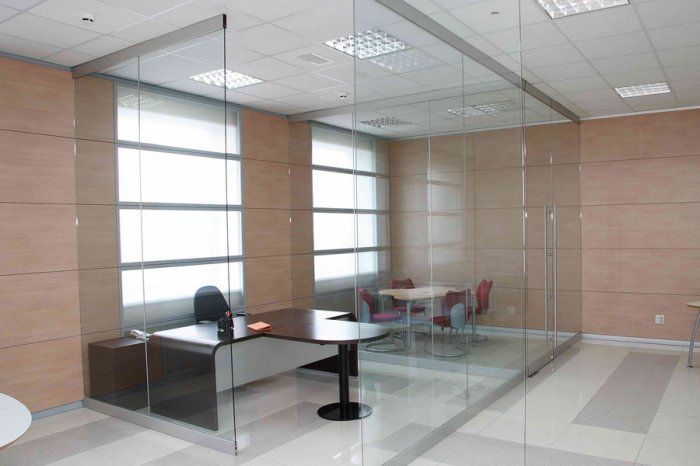 Противопожарная безрамная дверь в переговорную в Солнечногорске
